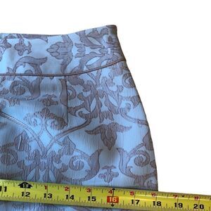 Very cute, like new, a-line mini skirt. A light blue background with a silvery brocade pattern. Skirt is lined. Not sure about size as tag is not in English. Please go by measurements, appears to be an x-small or 6.