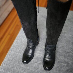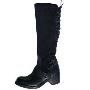Miz Mooz 38 Shankara Black Leather Tall Lace Up Boot