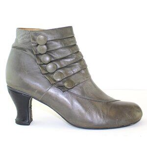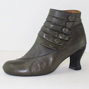 Miz Mooz Alisa Ruched Buttoned Leather Booties Womens (US 8.5/EU 39)