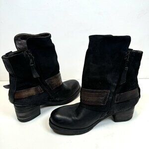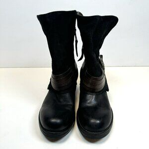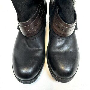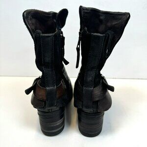 Miz Mooz Ankle Boots Womens Size 36 US 6 Black Leather Harness Buckle Moto