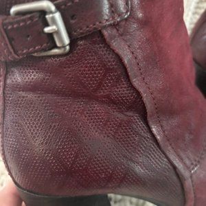 Great pair of Miz Mooz Boots, very flattering, great shape, gently worn. Heel - 3 inches. Size 38 - very comfortable boot. Leather boot, with inside zipper. Detailing on the back half of boot.