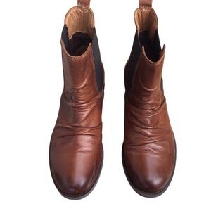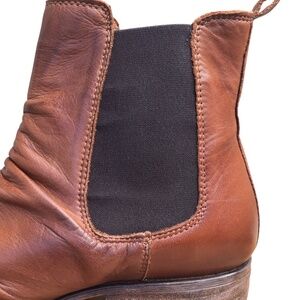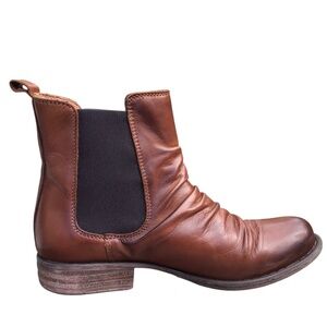 Lissie is the ultimate in comfort and style, from the ruched cognac brown leather to the ease of access provided by the back pull-tab and elasticized sides.