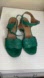 Chic emerald green sandals with a stylish heel. Features a woven leather design. Ideal for adding flair to any outfit.