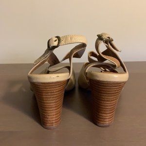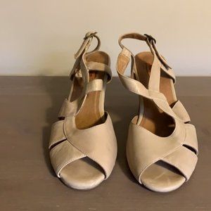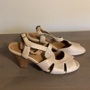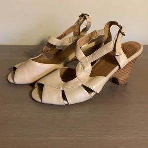 VGUC Miz Mooz “Guthrie” tan retro pin up open toed sandal heels in women’s size 8.