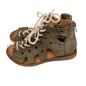 Brand: Miz Mooz | lace up, ankle tall, back zipper, leather sandals. Good pre-owned condition.