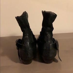 EUC Miz Mooz “Evelyn” black leather and suede motorcycle booties in women’s size 37.