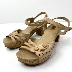 Miz Mooz Shoes Size 8.5 Camille Tan Leather Cork Platform Ankle Strap Sandals
