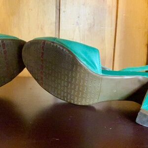 Miz Mooz Teal Green Retro Leather “Selima” heels Sandals sz 8