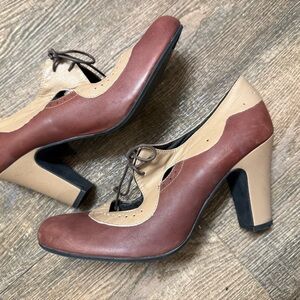 Miz Mooz size 10 new condition worn once burgundy and Tan Chunky lace heels