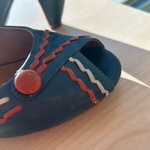 Miz Mooz teal and orange pumps 8.5 great used condition- inside of shoes is stained from cleaning- exterior in great condition! Price reflects :)