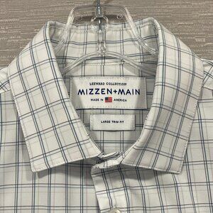 Mizzen + Main Shirt Mens Large White Check Large Trim Fit Button Up Long Sleeve