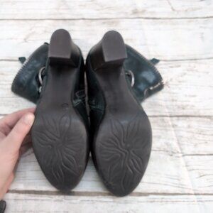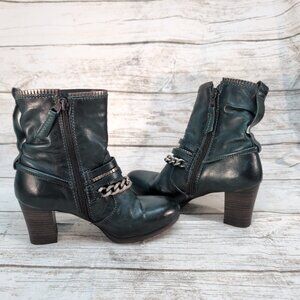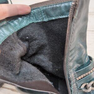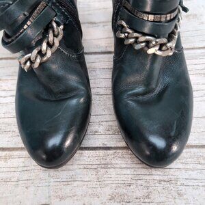 Mjus Dark Green Leather Ankle Boots Chain and Leather Harness Moto Biker Size 37