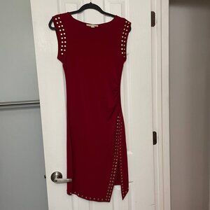 MICHAEL Michael Kors red sleeveless dress with silver studs on shoulders and hem and a side slit. In excellent condition.
