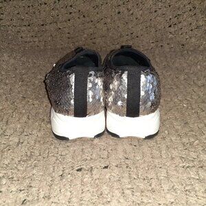 These Méliné Black/Gray Sequins Loafers are stylish and versatile shoes perfect for various occasions like travel, casual outings, or workwear.