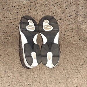 Size 38, measures 9.75" via removable insole, 10.5" via sole and 3.75" wide.