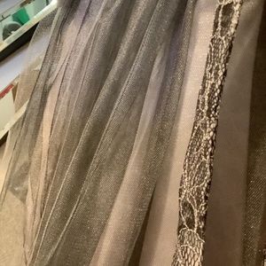 Dress is shimmering silver and pink with lace and tulle. It is not a Mme Weathersby , but I will include it because it matches so well. Size 4T