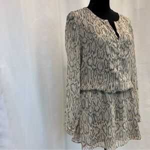 MNG tan brown chiffon long sleeve snake print dress Sz XXS