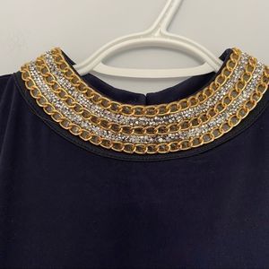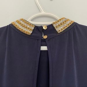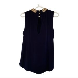 Moa Moa navy sleeveless top with gold chain neckline size medium M EUC