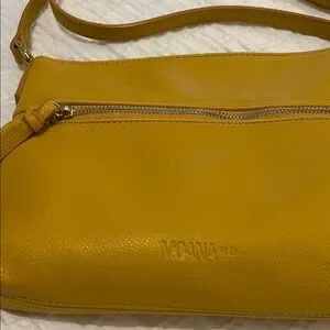 Moana Rd’s “the Thornton” crossbody bag in MUSTARD YELLOW. This colour is sold out online.