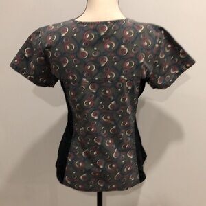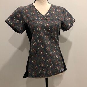 Mobb 🎄 nursing scrub top gray and black with all over print SZ XS
