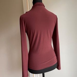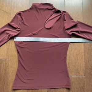 Mock Neck Long Sleeve.Brown Top with Cut out at chest/shoulder