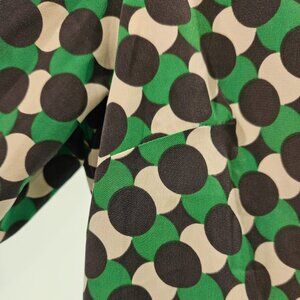 Fun flirty 3/4 length sleeve. Approx. 18" PTP no stretch, 19" at the hips, 33" in length. 100% Polyester, very light and fully lined. The black is not very dark, hue is true to photo of 33" length.