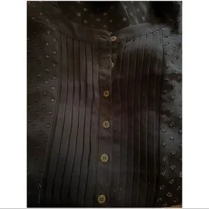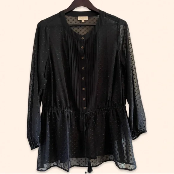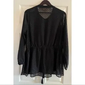 VGUC. Semi-sheer blouse with corded drawstring waist/peplum. Care instruction tag has been cut off (because you could see it through the blouse) but I always washed on gentle and laid flat to dry.
