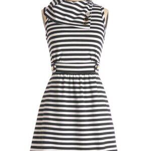 Classic fit and flare dress from ModCloth (brand: Montreau) for sale. Size small. Good condition except there's a tiny dark mark on one of the white stripes (see photo). It actually came that way from ModCloth but shipping it back was too much of a hassle so I never bothered, lol. It's not super noticeable. Priced accordingly!