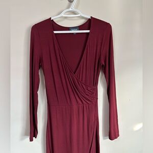 ModCloth Knit on the Town Faux-Wrap Dress in Burgundy