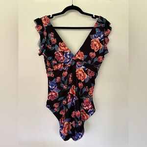 ModCloth | Ruffle Sleeves Multicolored Floral Print One Piece Swimsuit