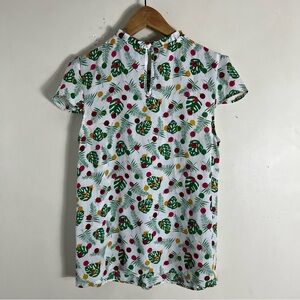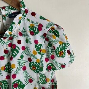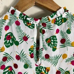 ModCloth women’s Short Sleeve Ruffle Shirt Novelty Christmas Size Large Leaf