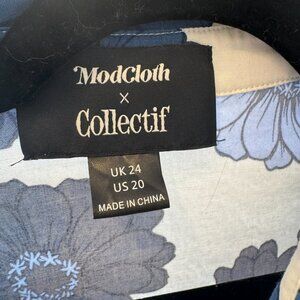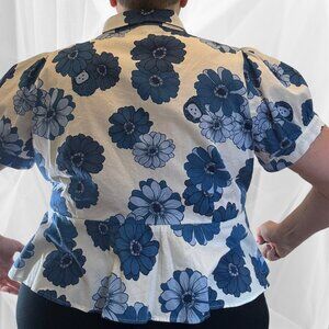 ModCloth x Collectif Blue Floral Peplum Blouse with Hedgehogs – Size 20
