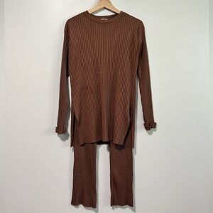 Moda Asya Brown Ribbed Knit Two-Piece Lounge Set Women’s Size Medium