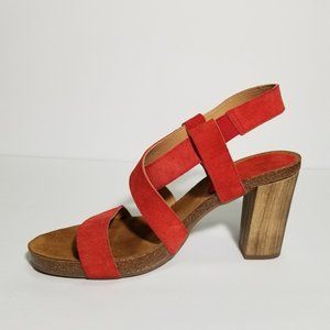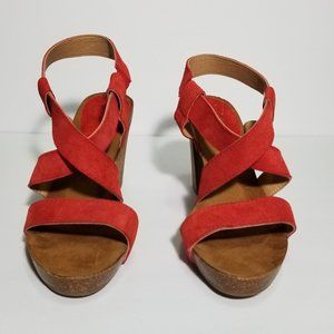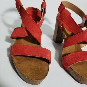 Moda Bella Red Suede Cross Strap Wooden Heel Sandals