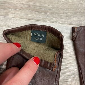 Moda Brown Leather Warm Wool Insole Leather Gloves XS(7)