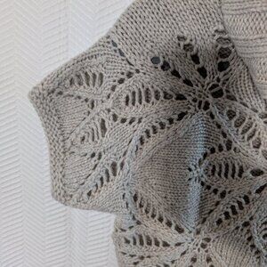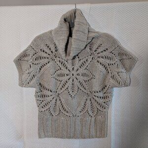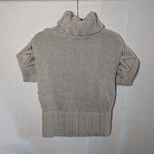 Moda International sweater, chunky knit pullover, wool blend sweater, ribbed turtleneck, short sleeve knitwear, lace knit sweater, Mississauga closet, layering piece, cozy neutral sweater, cottagecore fashion, slow fashion knit, textured pullover, medium size sweater, fall winter wardrobe, heirloom knitwear, Y2K, Neutral sweater