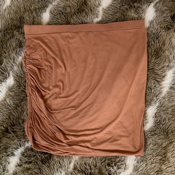 ๐ท Fall basic staple basics tan cream nude brown skirt curvy curve hugging ruched gathered ๐ท