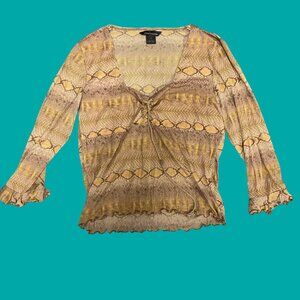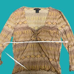 Moda International Snake Print Sheer Tie Front Top (Size S) Y2K Mesh Long Sleeve