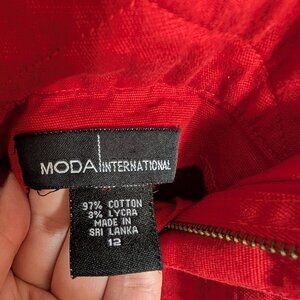 Moda International Women's Y2K Red Cotton Pants Size 12 Low rise Wide belt