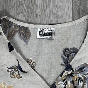 Moda Petite By Paris Star Vintage Flowers V-Neck Button Down Shirt