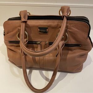 Modalu London Leather Satchel Tote, Warm Rose Tan, Triple Compartment