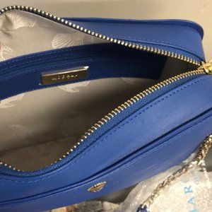 The boxy 'Austen' features a chain link and leather strap and a top zip fastening that opens to reveal a jacquard lined interior.