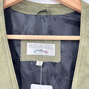 Brand: Modango | Suede leather and wool vest, boxy, lined, with some marks of wear see pictures (darker spots but overall good pre-owned condition), Unisex style.