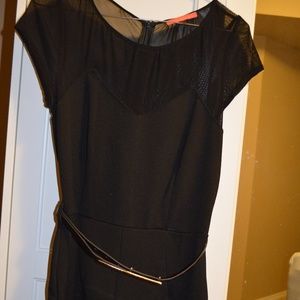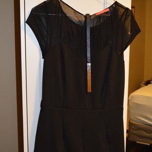 Unlined. Sheer top. Back zipper with hook and eye closure.
