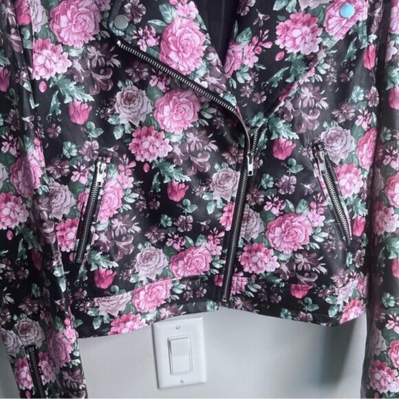 Modcloth Floral Faux Leather Moto Jacket Size Large