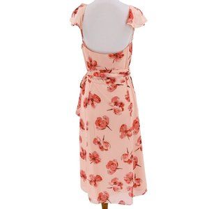 Modcloth Hutch Midi Wrap Dress Womens Large Peach Pink Floral Adjustable Flowy