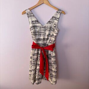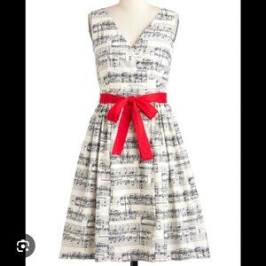 Modcloth "In the Key of Chic" Musical Score Dress in Black and Cream