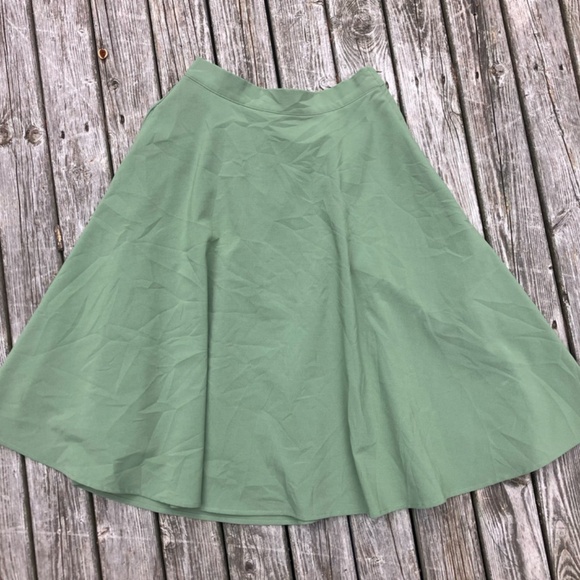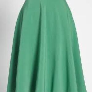 You'll definitely have that swing when you step out in this green midi skirt. Elasticized-back circle skirt touts a vintage-inspired, high-waisted design with handy hidden pockets and beautifully-draped fabric, sure to influence a plethora of dance-worthy ensembles.