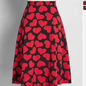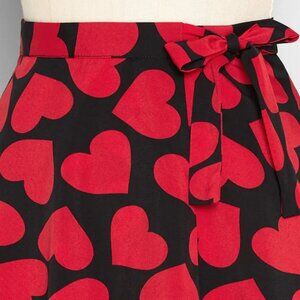 Modcloth Tumbling In Love Wrap Skirt Medium Valentine red Hearts on black