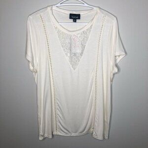 ModCloth White Open Mind Lace V Neck Top Size XL